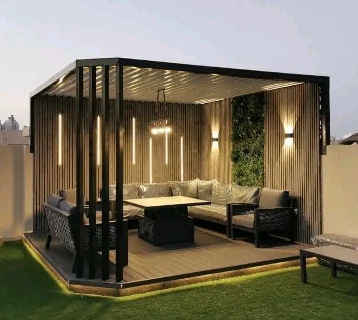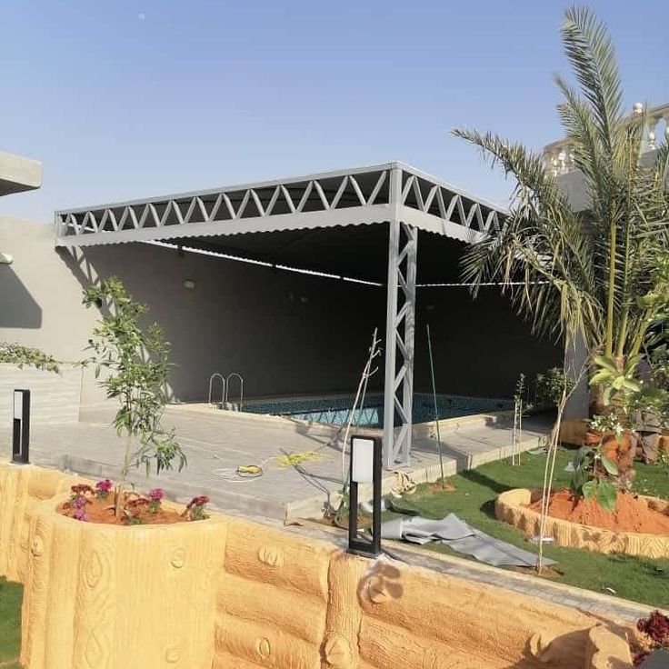 🔥 مميزات هذا النوع من التصميم✔ شكل عصري فاخر يناسب الفلل والاستراحات.✔ عزل حراري ممتاز يقلل الحرارة داخل الجلسة.✔ مقاوم للأمطار والرطوبة.✔ عمر افتراضي طويل بدون صيانة كبيرة.✔ أسرع وأوفر من البناء التقليدي.✔ قابل للتعديل أو التوسعة مستقبلًا.📐 المقاسات الشائعة للتنفيذ4×4 م5×5 م6×4 مأو حسب المساحة المتوفرة.إذا حاب تنفّذ نفس التصميم، أرسل لي:المقاس المطلوب.الموقع (حوش / سطح / استراحة).هل تريد جلسة مبنية مثل الصورة أو مفتوحة فقط؟وأعطيك تفاصيل تنفيذ أدق مع تصور عملي للتكلفة.